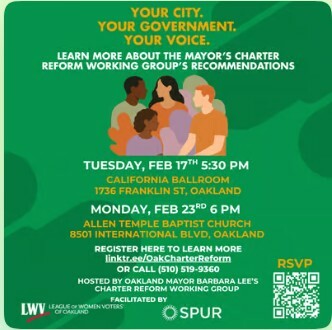 Join the Working Group led by the League of Women Voters Oakland and SPUR as they share the final recommendations of their report, how they got there, and hear from you with your thoughts on the report and how we build a city government that works for everyone.