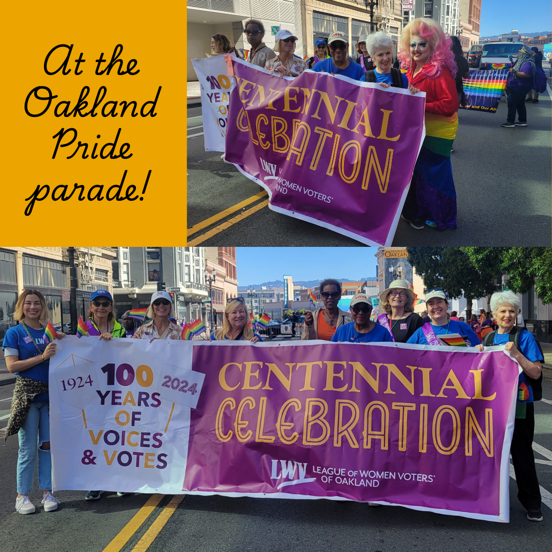 We invite all League members to march with us in the Annual Oakland Pride Parade. This is a wonderful opportunity to demonstrate our commitment to equality and justice for all while celebrating our diverse community.