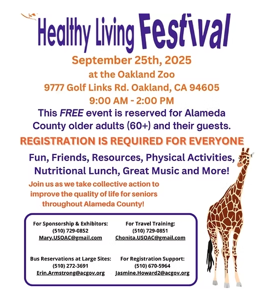 Join United Seniors of Oakland and Alameda County (USOAC) for a free event exclusively for Alameda County older adults (60+) and their guests. This annual celebration is designed to promote wellness, connection, and healthy aging in a fun, engaging environment.