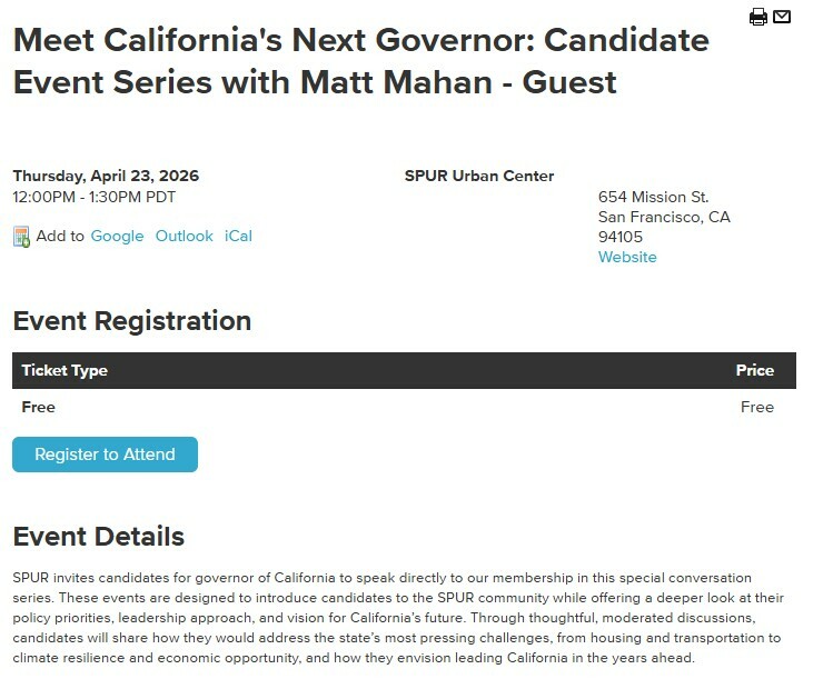 SPUR: Meet California's Next Governor: Candidate Event Series with Matt Mahan